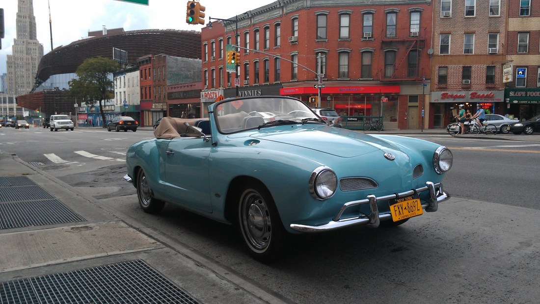 Funny enough, this was parked just down the street from a place called 67 Burger, which has the entire left side of a 914 (cut an inch or two in from the headlight) mounted on the wall.