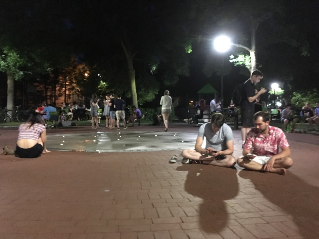 There’s ~100 people farming Pokémon in this smallish park and a Somerville police van just drove by BLASTING THE POKÉMON THEME SONG 😍
